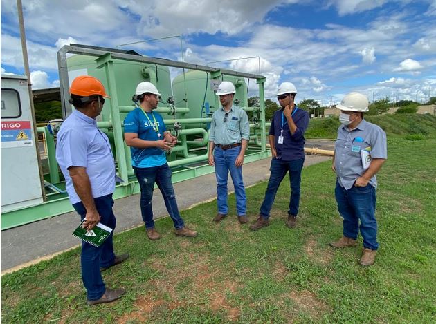 O gerente de tratamento de água e esgoto, André Borges, e o coordenador operacional de tratamento de esgoto da concessionária, Alan Guedes, receberam a equipe da Empaer e mostraram todas as instalações das quatro lagoas de tratamento, bem como o local de armazenamento do biolodo.