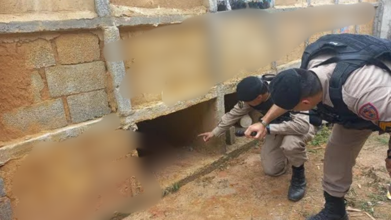 Coveiros encontraram marcas de sangue e estrutura com cimento fresco e tijolos quando chegaram para trabalhar. Caso aconteceu em Visconde do Rio Branco, na manhã desta terça-fira (28/03).