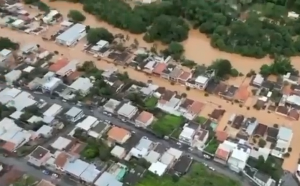 A Prefeitura de Matias Barbosa, na Zona da Mata mineira, divulgou nesta terça-feira (24) imagens aéreas da cidade debaixo d’água após a passagem de um temporal pela região.