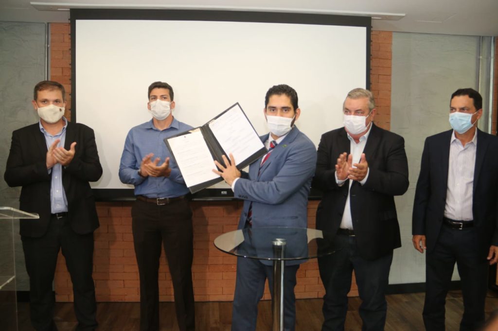 O vice-governador Lincoln Tejota, representando o governador Ronaldo Caiado, assinou contratos de projetos entre o Governo de Goiás, por meio da Goinfra e o Fundepec-GO