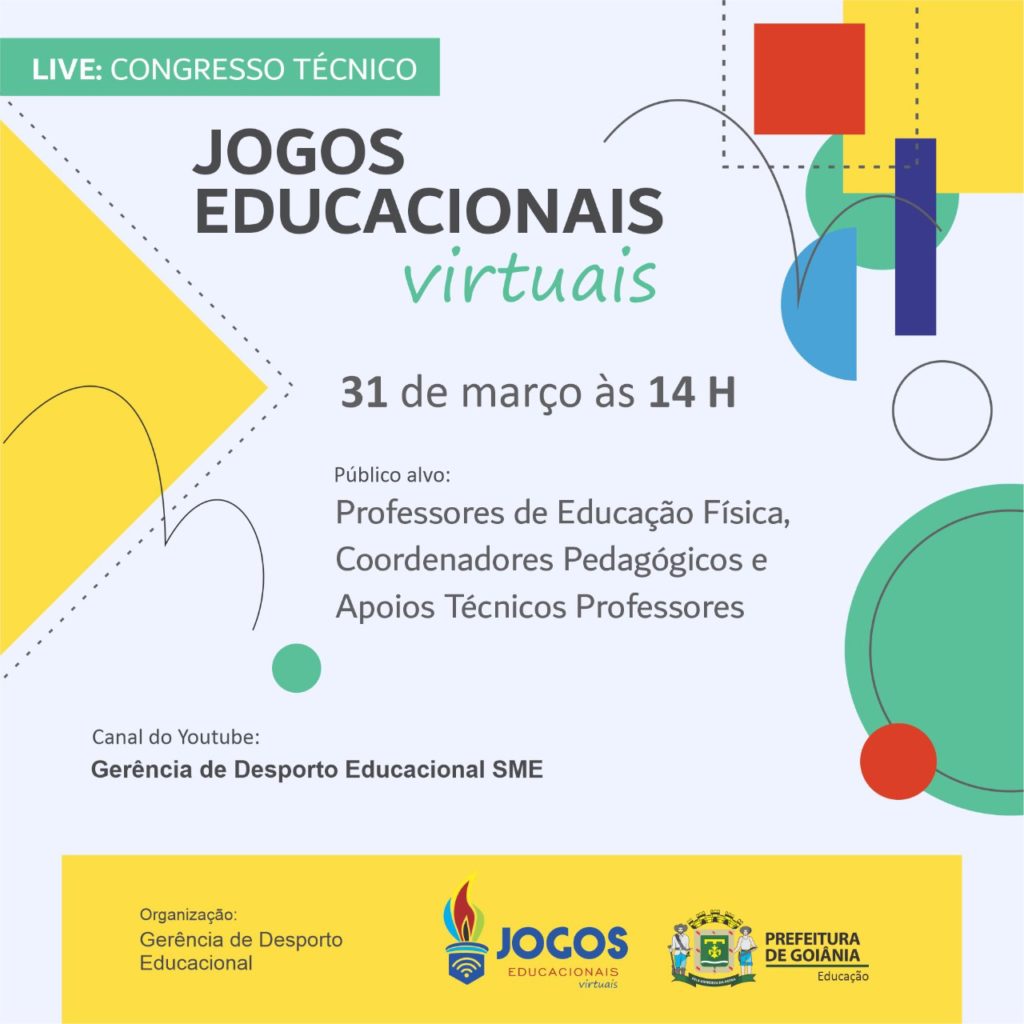 A Prefeitura de Goiânia, por meio da Secretaria Municipal de Educação (SME), realiza na tarde desta quarta-feira (31/4), às 14h, o Congresso Técnico dos Jogos Educacionais 2021. A reunião é voltada para professores de Educação Física, coordenadores e apoios técnicos das instituições da rede municipal.