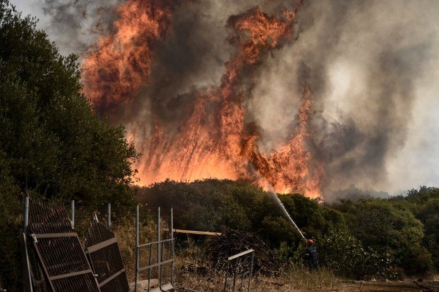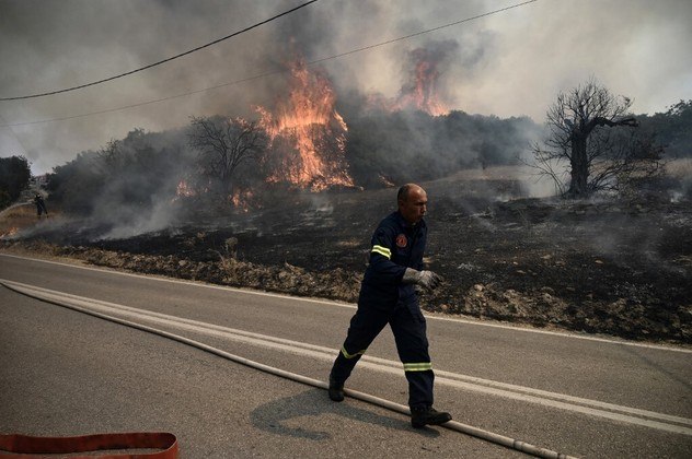 As chamas também afetam as ilhas Eubeia e Kythnos, no Egeu, e Boeotia, uma região ao noroeste de Atenas.