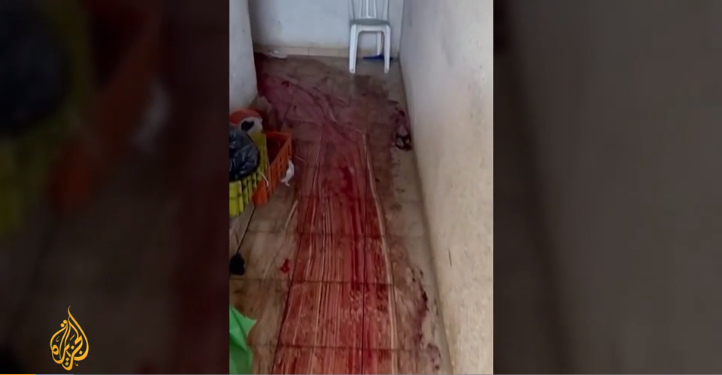 Corredor de sangue de pessoas mortas arrastadas dentro da casa atacada. Foto: Reprodução/Internet/Al Jazeera