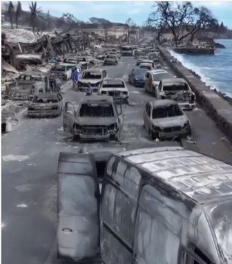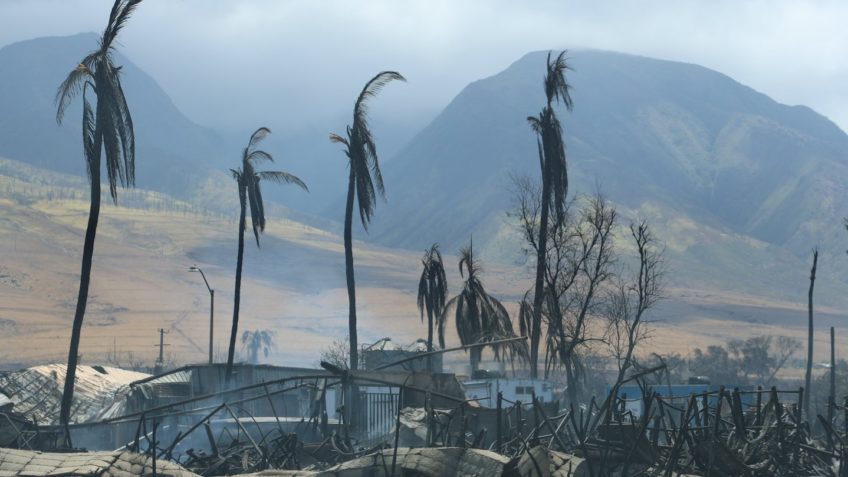 Segundo o governo de Maui, 1.418 pessoas estavam em abrigos na 6ª feira (11.ago.2023); na foto, área destruída pelos incêndios. Foto: Divulgação