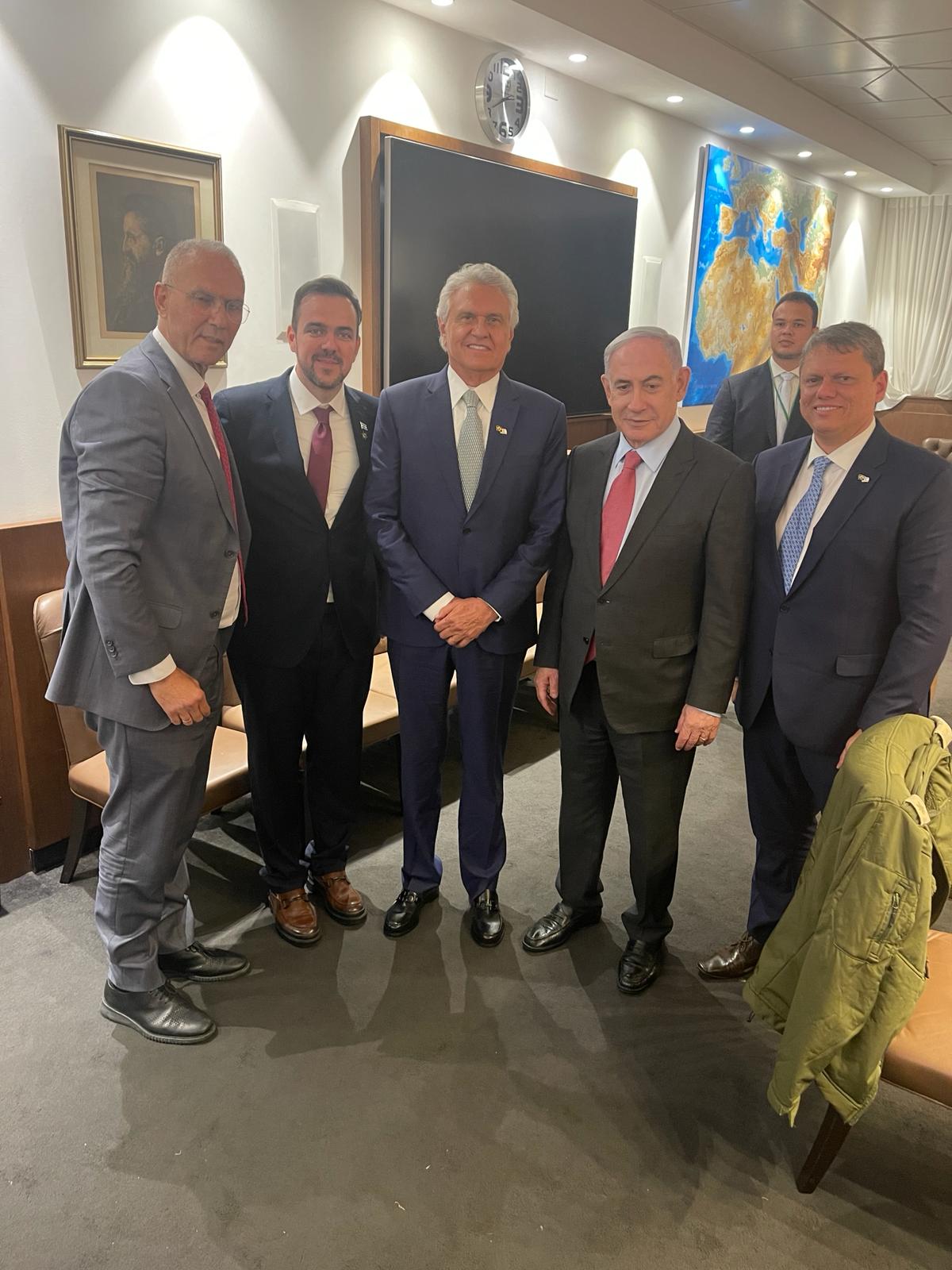 O governador Ronaldo Caiado em reunião o primeiro-ministro de Israel, Benjamin Netanyahu