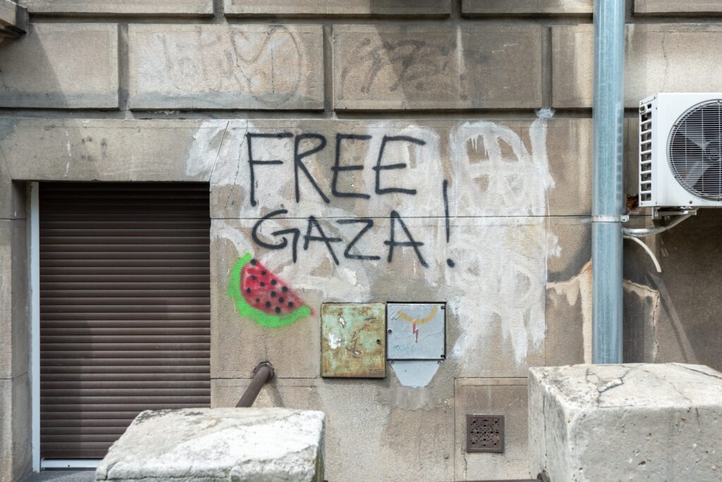Mesmo em Jerusalém, dentro da Cidade Velha, um homem foi preso após supostamente pintar com spray “há um holocausto em Gaza” nas paredes da Igreja do Santo Sepulcro.