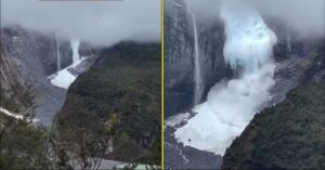 As cenas foram registradas no parque nacional Queulat, na região de Aysén, que fica no centro do país, aos pés da cordilheira dos Andes. Nas imagens, dá para ouvir o estrondo causado pelo fenômeno.
