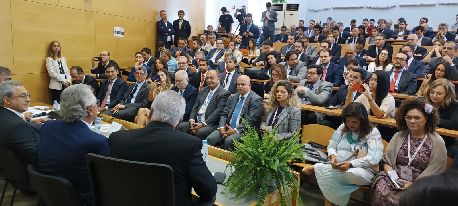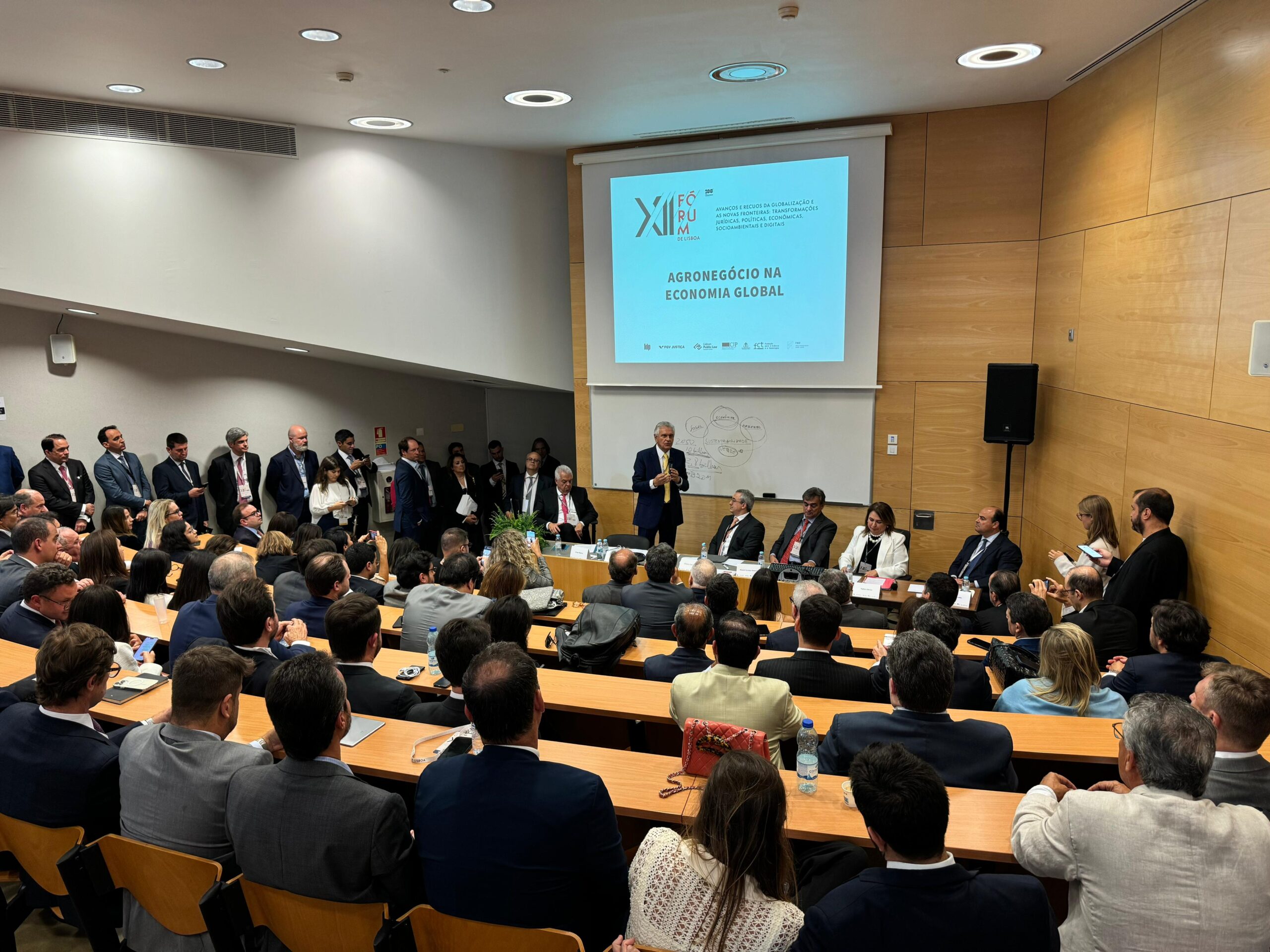 Ao falar sobre a competitividade do agronegócio brasileiro, e a busca por produtividade com respeito ao meio ambiente, Caiado destacou que não cabe à União Europeia definir parâmetros de sustentabilidade, já que o continente europeu praticamente não tem florestas nativas originais, apenas áreas replantadas. O evento, que segue até sexta-feira (28), tem como tema “Avanços e recuos da globalização e as novas fronteiras: transformações jurídicas, políticas, econômicas, socioambientais e digitais”.
