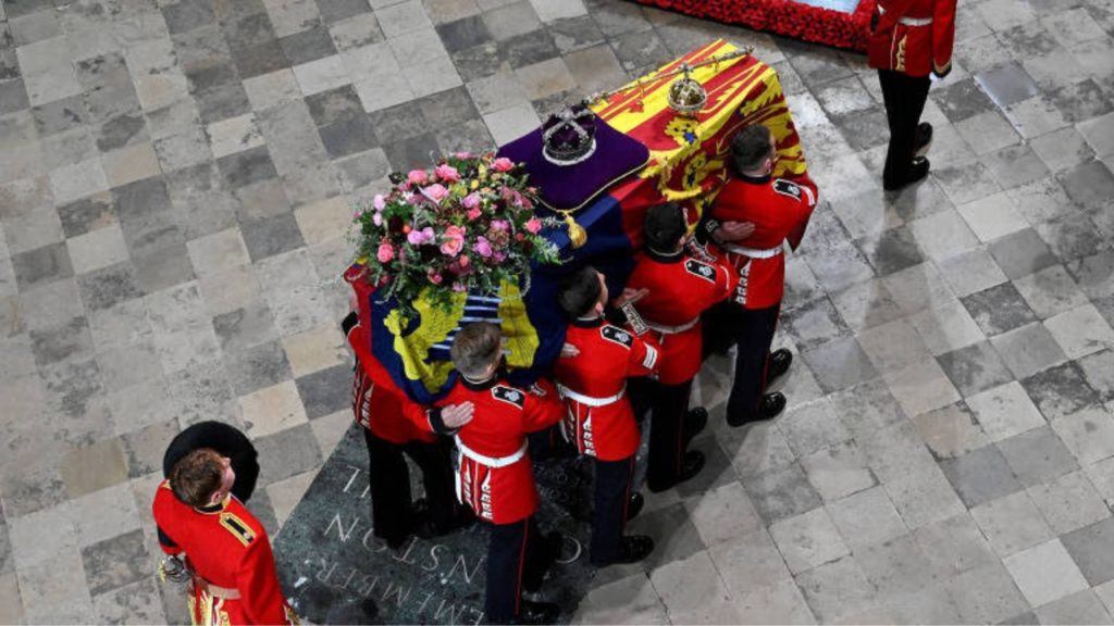 O caixão da rainha foi cortejado até Abadia de Westminster, onde ocorreu o funeral de Estado.