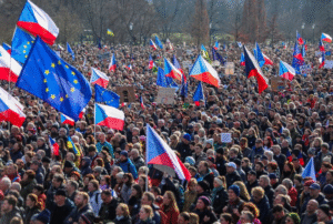 Os organizadores do protesto, Milion Chvilek (Um Milhão de Momentos pela Democracia), alertaram que o país pode seguir o caminho da Eslováquia ou da Hungria, vizinhos da Europa Central que entraram em conflito com o executivo da União Europeia sobre questões de Estado de Direito.