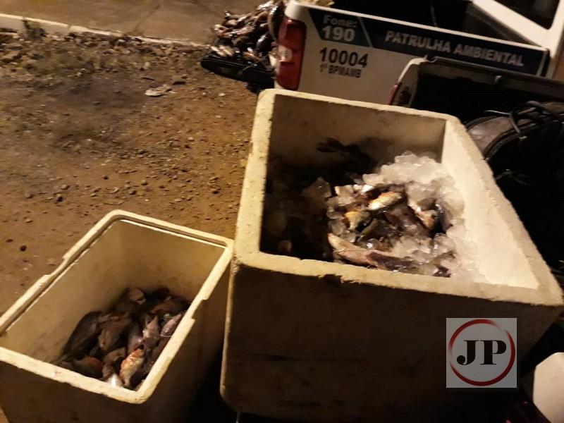 De acordo com o tenente Dias, entre elas 140 Kg de pescados, 10 kg de capivara e três carretas carregada de madeira.