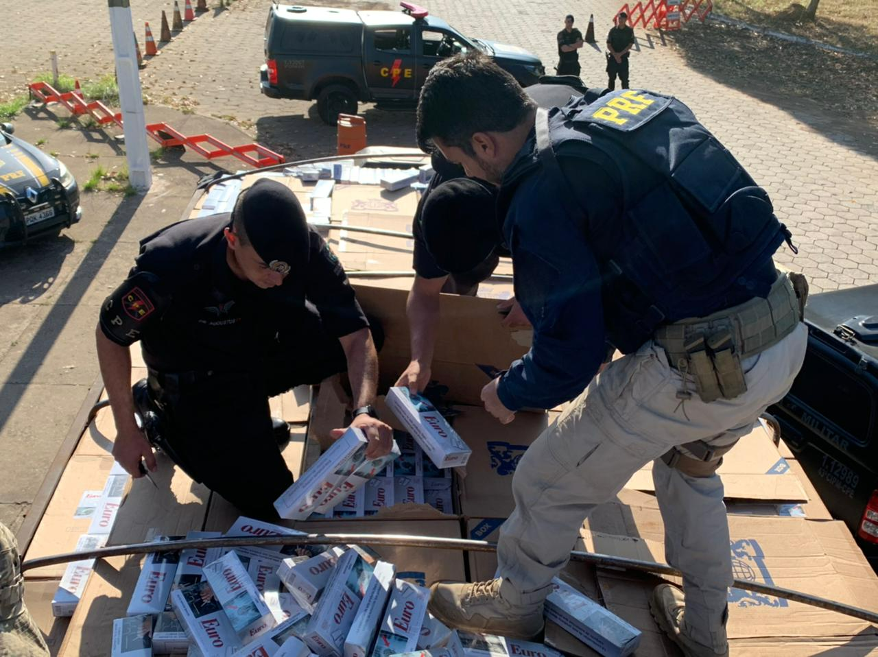 Assim, a PRF/GO juntamente com a PM2, COD/2, COD e CPE, ambos da PMGO, apreenderam cerca de 22 mil pacotes de cigarros contrabandeados do Paraguai, na Unidade Operacional de Guapó (GO).