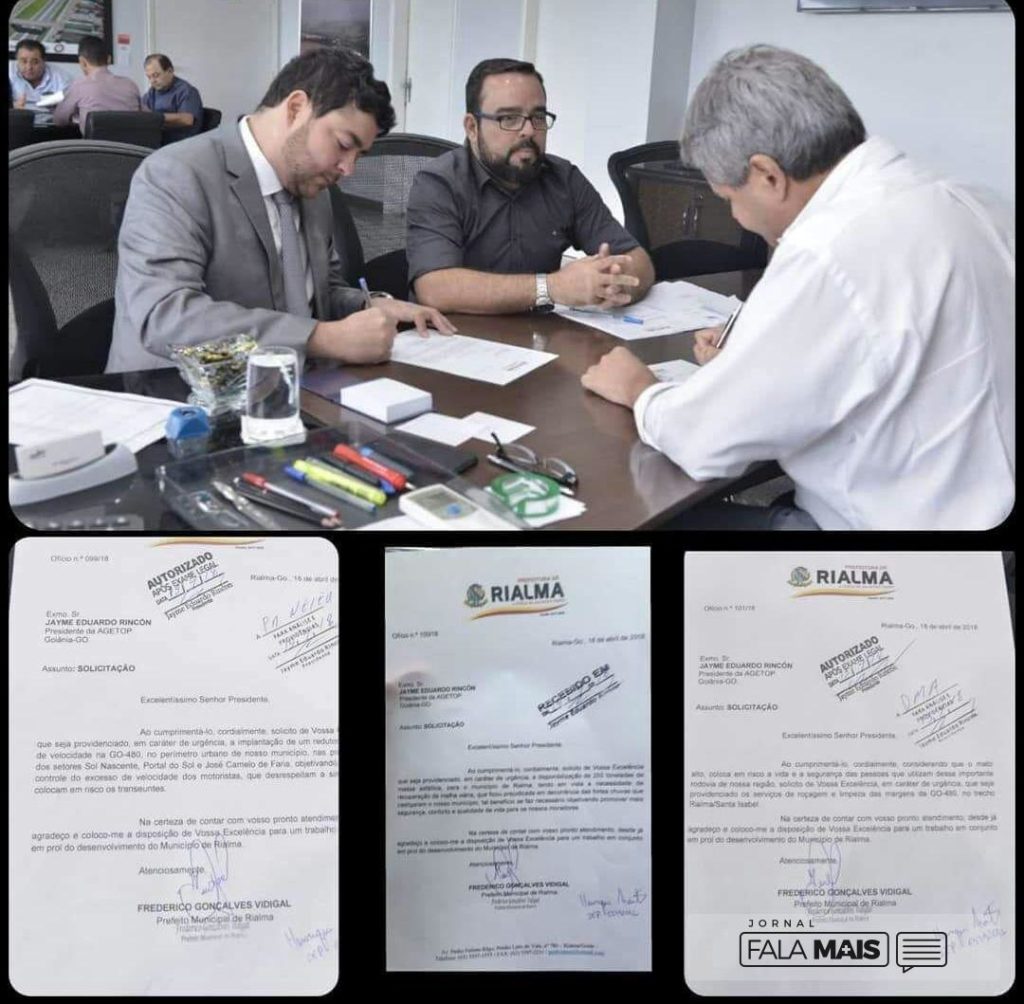 Ainda na Agetop o prefeito encaminhou um pedido para um redutor de velocidade no perímetro urbano da GO-480 e ainda os serviços de roçagem e limpeza das margens da GO-480 no trecho de Rialma a Santa Isabel. Sem dúvida hoje foi dia muito produtivo para o prefeito e consequentemente para o município.