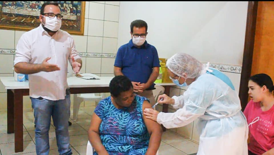 O primeiro grupo prioritário a receber a vacina foi os internos do Lar Antônio Nunes. Logo após, serão vacinados os profissionais que trabalham na linha de frente contra a COVID-19.